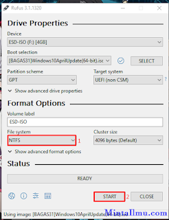 5. Untuk pilihan yang lain biarkan saja karena akan otomatis disesuaikan sendiri saat kita memilih file ISO kecuali pada pilihan File System pilih format sesuai pada OS nya. Untuk Windows gunakan format NTFS dan kalau Linux gunakan format FAT32.