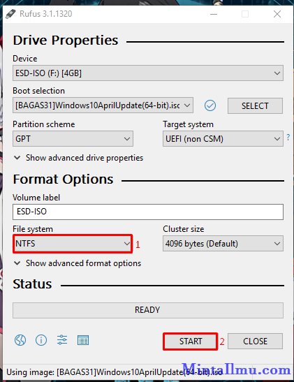 5. Untuk pilihan yang lain biarkan saja karena akan otomatis disesuaikan sendiri saat kita memilih file ISO kecuali pada pilihan File System pilih format sesuai pada OS nya. Untuk Windows gunakan format NTFS dan kalau Linux gunakan format FAT32.
