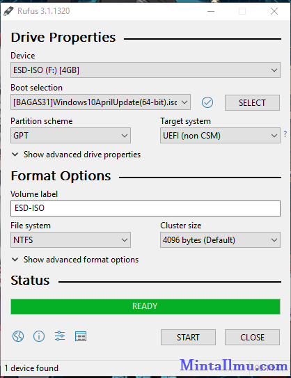 3. Pada pilihan device, pilih flashdisk yang ingin dibuat bootable “jika terdapat 2 flashdisk atau lebih yang tertancap”.