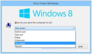 Sebagai alternatif, begitu Anda berada di desktop (WIN + D), tekan Alt + F4 untuk membuka menu shut down,sleep, dan opsi lainnya, anda bisa lihat seperti ini hasil jika anda tekan ALT + F4.