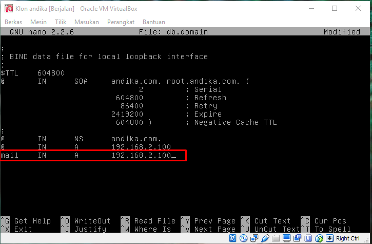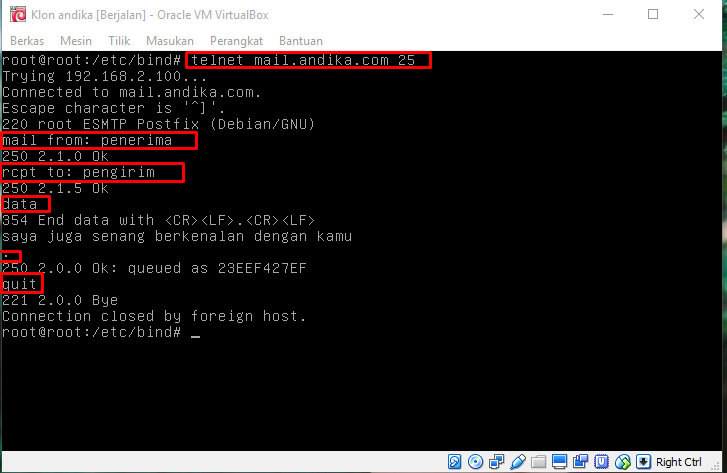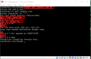 - telnet mail.andika.com 25 ( untuk mengirim pesan server )