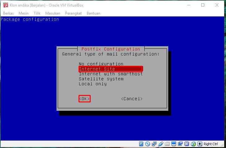 4. kemudian ikuti gambar dibawah ini untuk penginstallan postfix