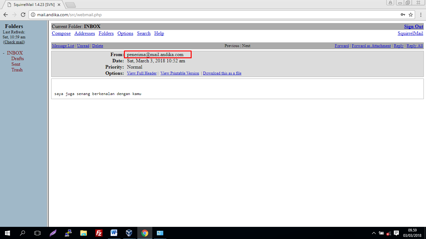 - telnet mail.andika.com 110 ( untuk menerima pesan dari pengirim server )