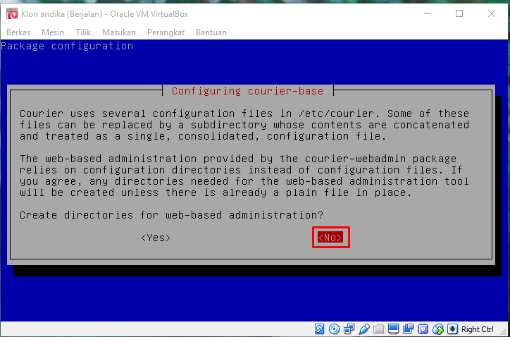 3. kita install paket squirrelmail dengan perintah apt-get install postfix squirrelmail courier-pop courier-imap