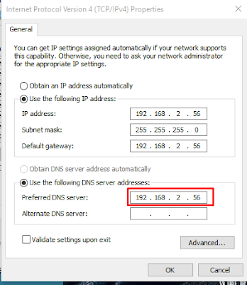 1. Arahkan dulu computer client ke DNS server yang kita buat. Lalu masukan IP Address nya.