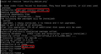 3. Konfigurasi vsftd dengan perintah apt-get install vsftd -y.