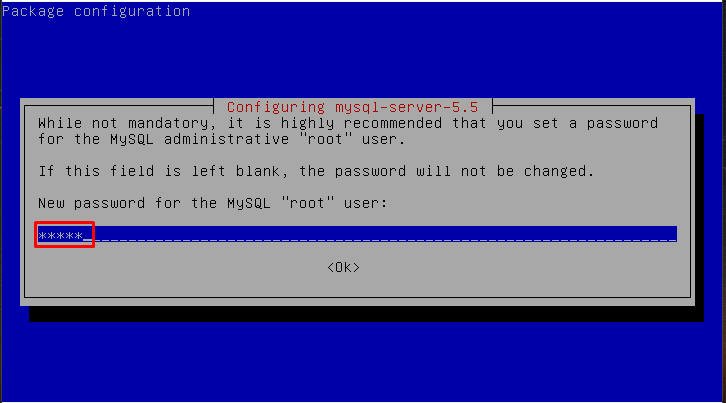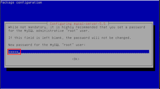 4. Kita install paket webserver dengan perintah apt-get install apache2 php5 mysql-server phpmyadmin .